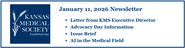 There will undoubtedly be other issues that carry forward and many new ones that crop up in the volatile vortex of the political process. The Kansas Medical Society is present at the statehouse every day, monitoring issues impacting the practice of medicine and building relationships to inform Kansas policymakers. If you have not already, we encourage you to register for The Kansas Medical Society Advocacy Day on Wednesday, January 21st. You will hear from House and Senate Leaders about their priorities and their response to the professions’ concerns. Both the Kansas Insurance Commissioner and the Governor have accepted our invitation to share in our event as well. Most importantly, we are looking forward to hearing from you and engaging you in our advocacy for your profession and patients. Please sign up to join us today.
